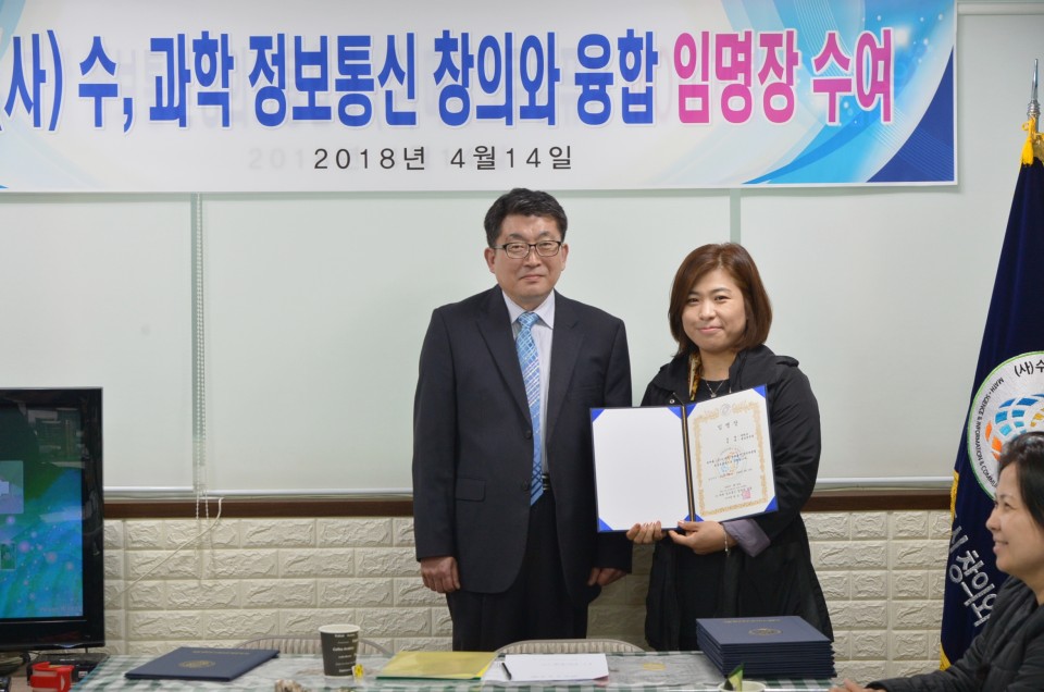 (사)수·과학정보통신창의와융합 협회 임명장 수여식이 아래와 같이 진행되었습니다.